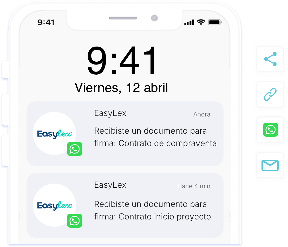 Envía documentos a través de WhatsApp, correos electrónicos automatizados o comparte el link.